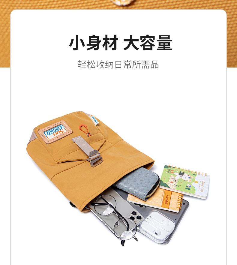 SunCamp TrailMini 斜挎包 小而能装,自由出行的理想搭档。 在城市与山野之间自由切换,TrailMini以轻便之姿承载日常所需。灵感源自户外徒步装备,采用耐磨防泼面料,无论是城市通勤、周末短途,或是户外露营中的“轻装战术”,它都能以恰到好处的容量和贴合身体的设计,带来不羁又实用的携带体验。 极简轮廓,兼容都市与户外穿搭 宽肩带设计,减压舒适不勒肩 前后多拉链夹层,收纳有序 面料耐磨防泼,轻雨天气也从容应对 出发,不必多想,一包随行。