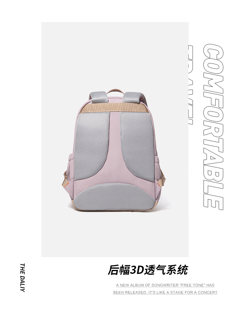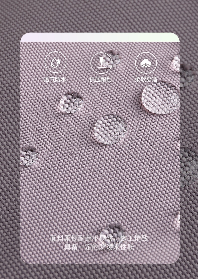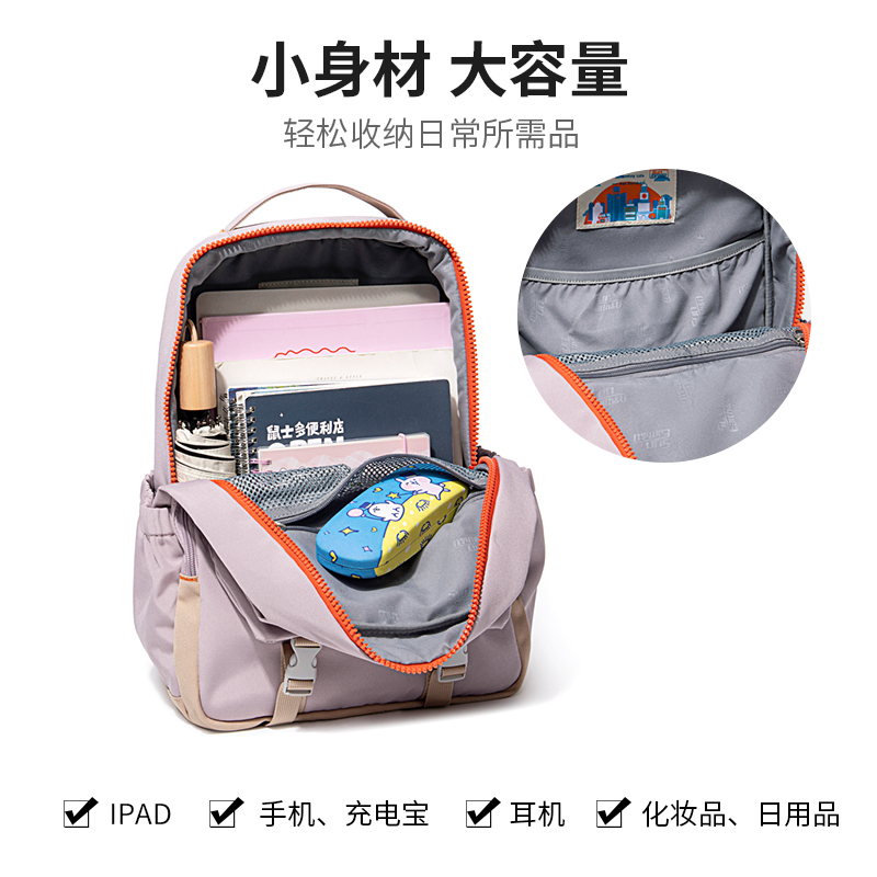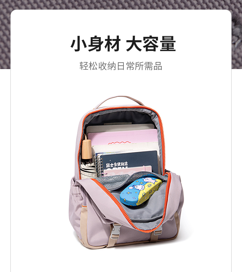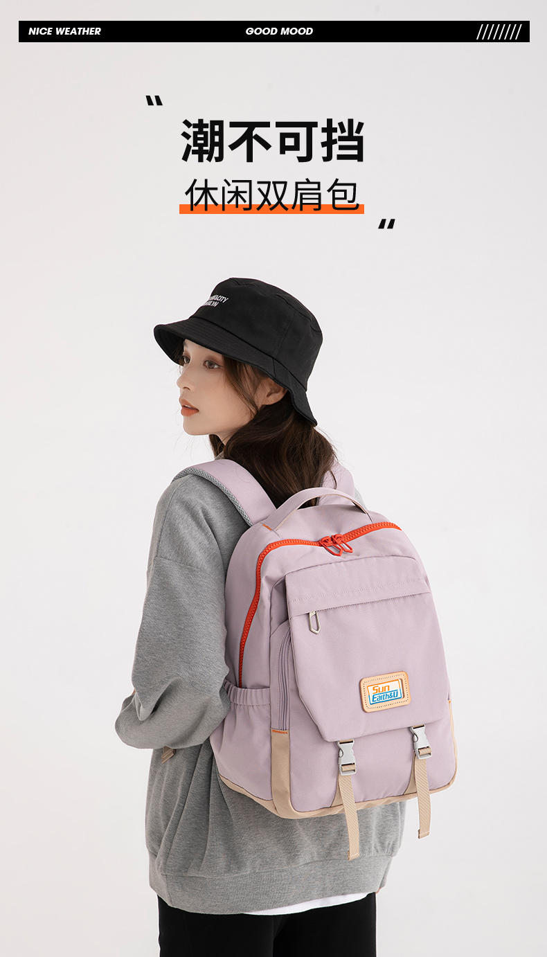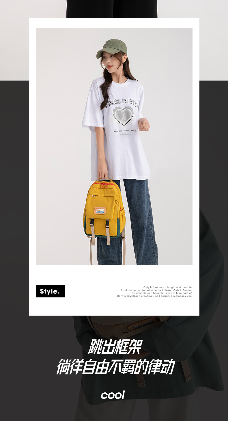 三种清新配色(淡紫、米白、姜黄)任你选择,搭配醒目的撞色拉链设计,细节感满满,男女皆宜。重量仅0.45kg,长时间背负也无负担,是你不可或缺的潮流搭档。