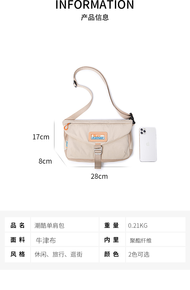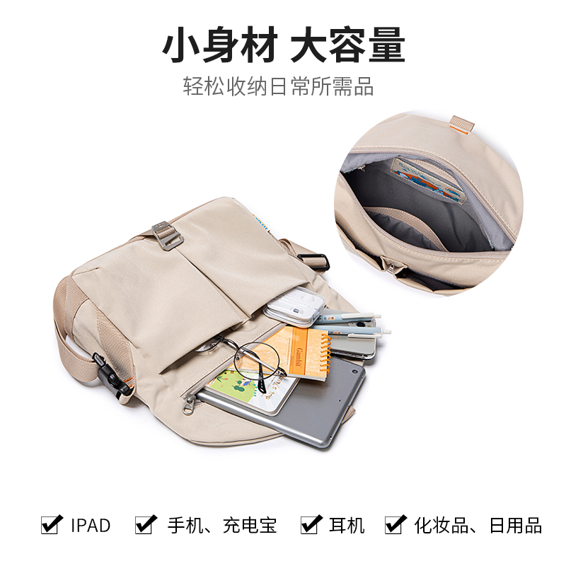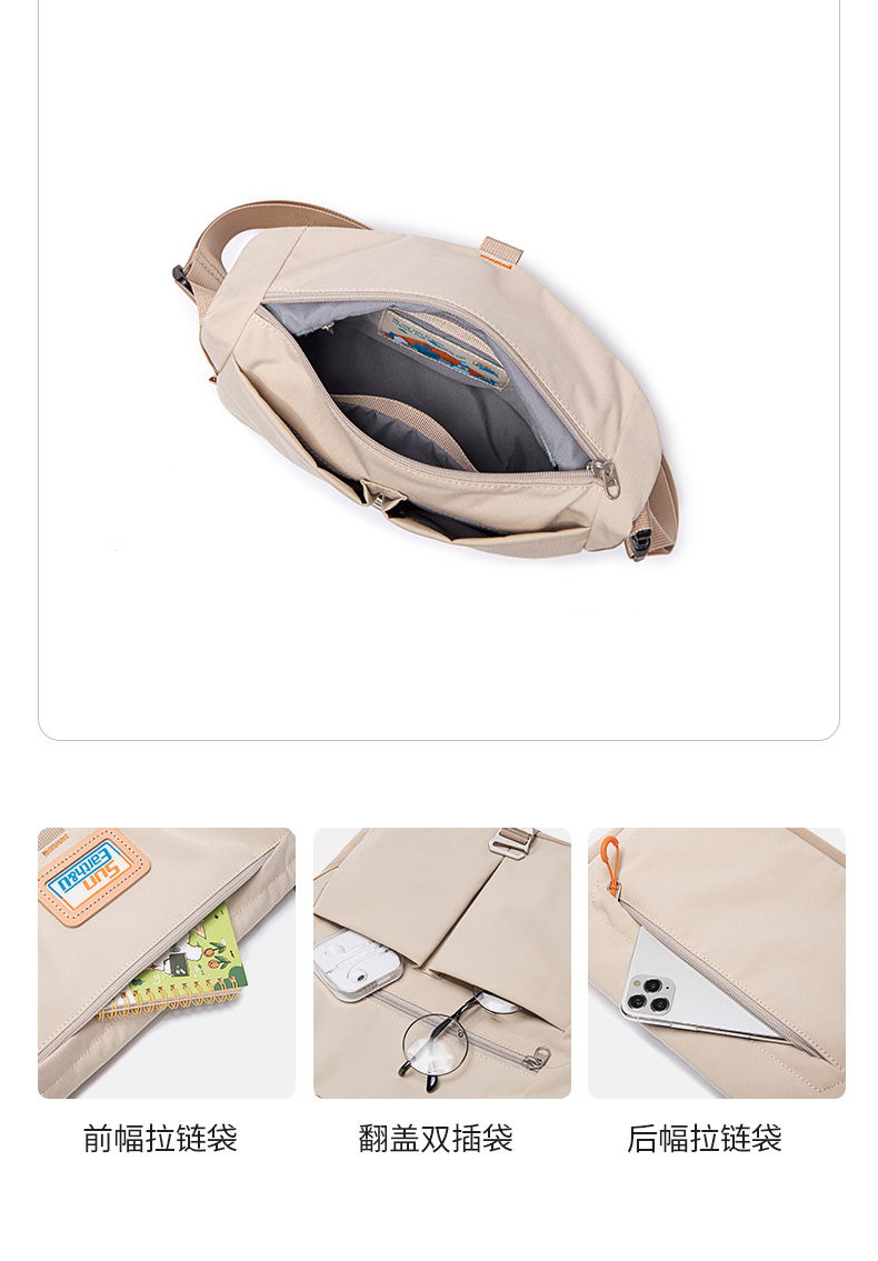 Suncamp Lite 单肩包 轻装上阵,自在出行 无论是城市漫步,还是短途露营,Suncamp Lite 单肩包都是你理想的轻便伴侣。延续 Suncamp 系列一贯的简约设计与实用理念,采用高密度防泼水面料,搭配多功能收纳结构,将轻盈与耐用完美融合。 人体工学斜挎设计,贴合身形,解放双手,让你在快节奏的日常与户外活动中自由切换。多色可选,百搭出行,轻松应对各种穿搭风格。 Suncamp Lite —— 装得下日常,也承载你的自在生活方式。 【Sun Earth &U】