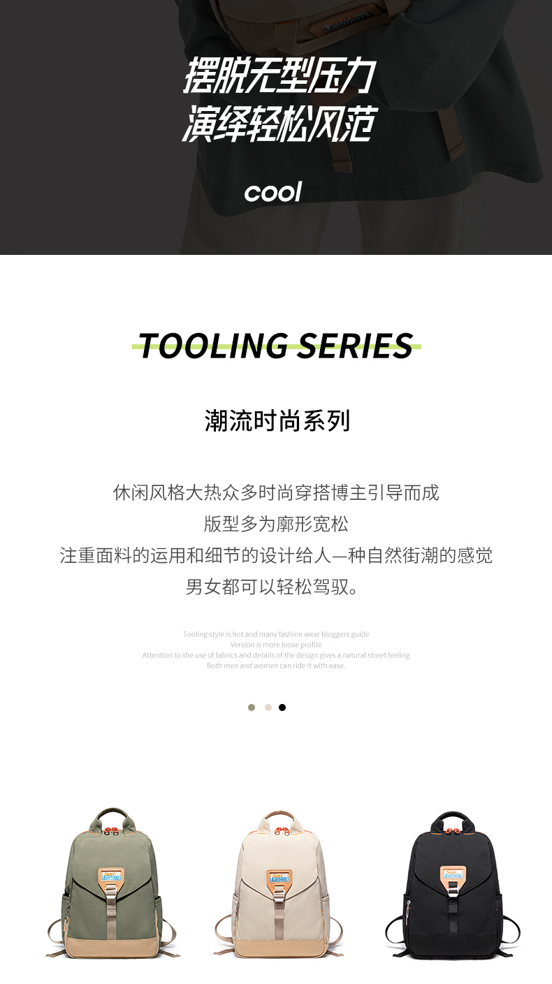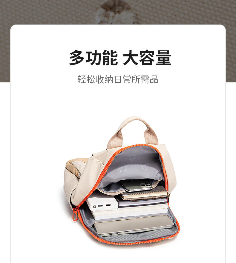 简洁的外观线条结合实用多口袋设计,无论是通勤、上课,还是短途城市漫步,DailyEase 都能从容应对。