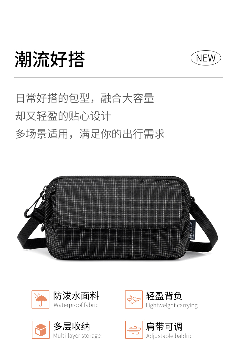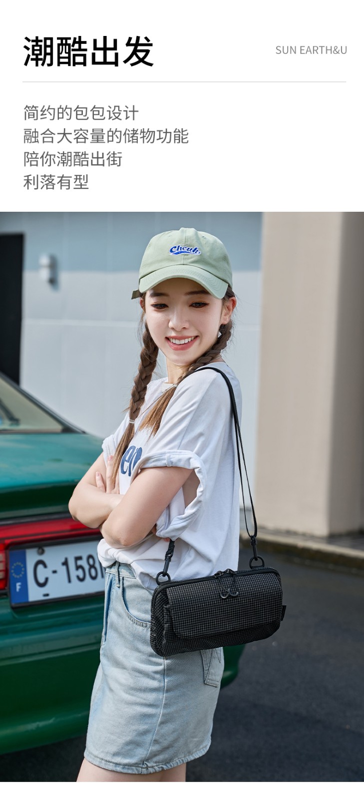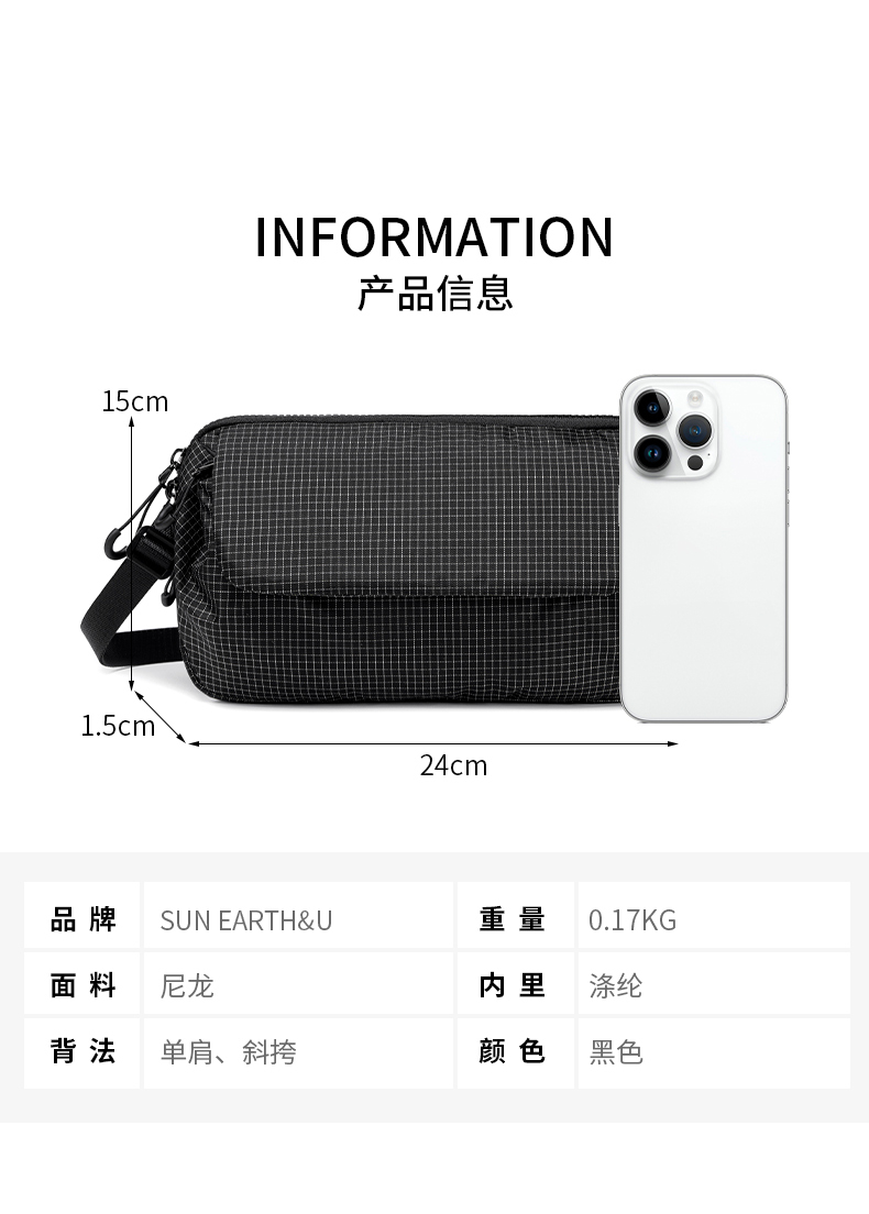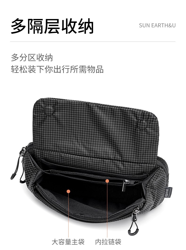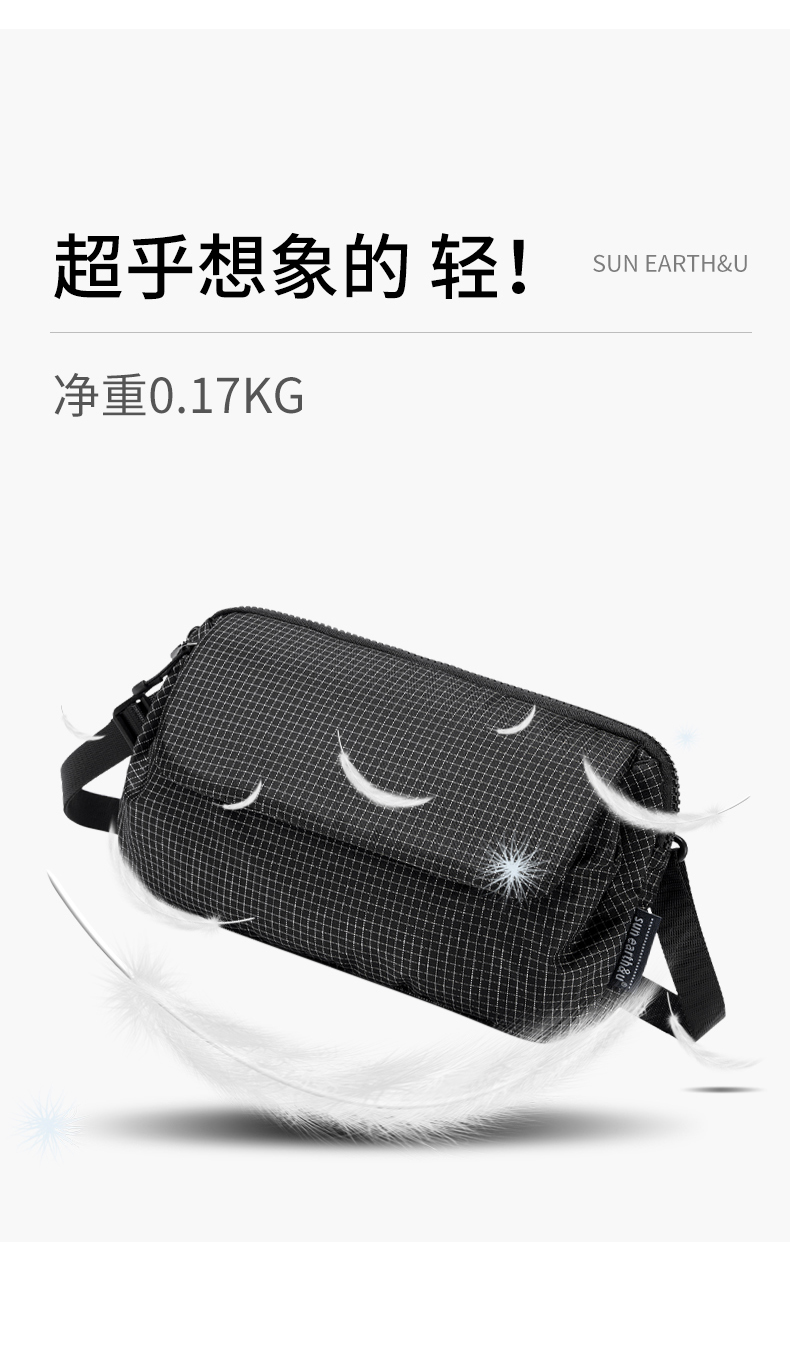 轻盈有序,自在随行 AIR格子,以 0.17kg 超轻设计,让出行回归本真轻松。 采用 定制网格尼龙材质,兼顾耐用与质感。 虽小巧(15cm × 1.5cm × 25cm),却拥有 多层收纳结构,随身物品各就其位。 无论是城市漫步、日常通勤,或是旅途随行, AIR格子都能以轻盈姿态,赋予出行更多从容与自由。 【Sun Earth &U】