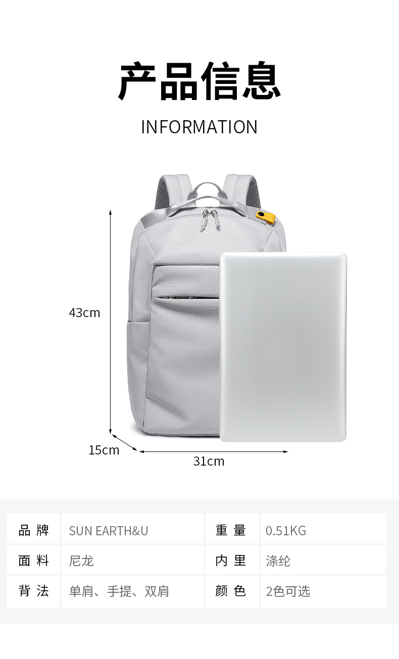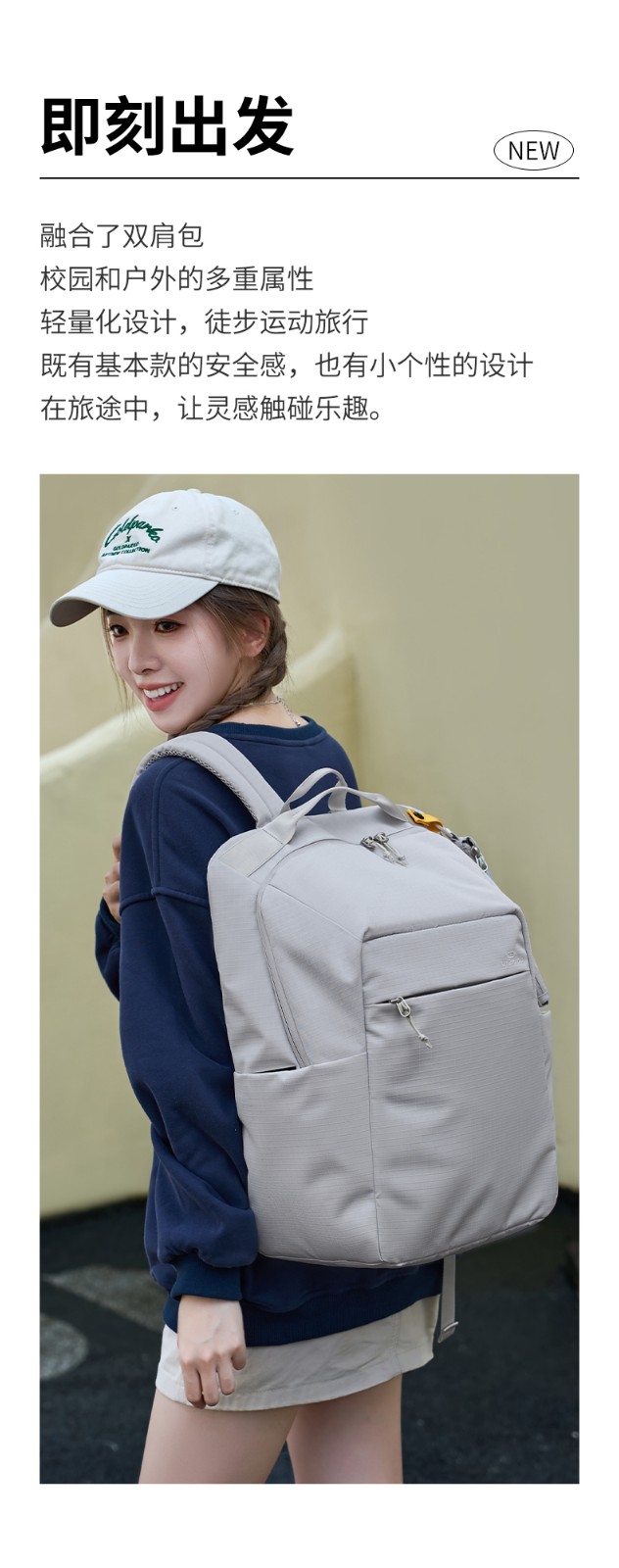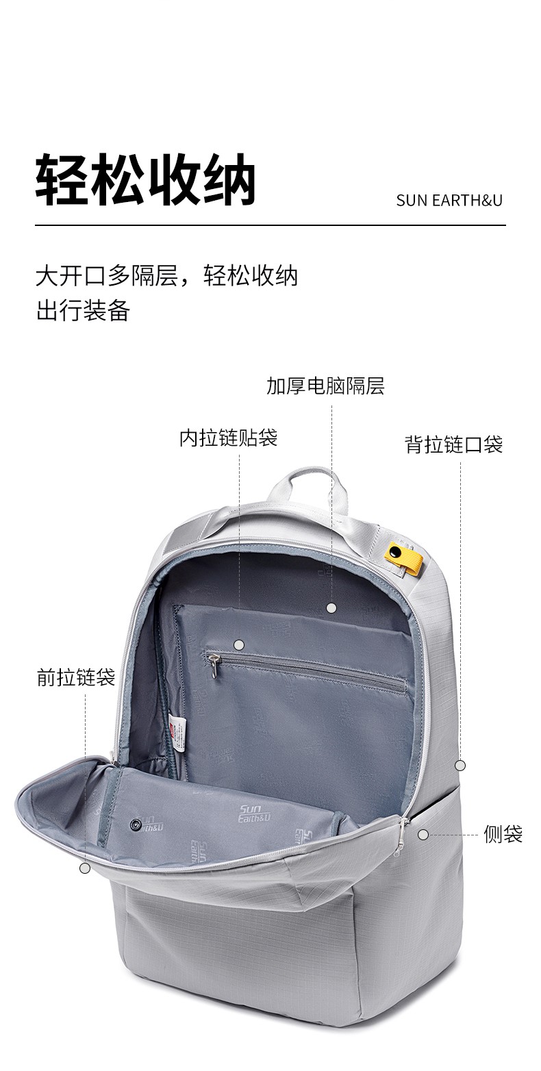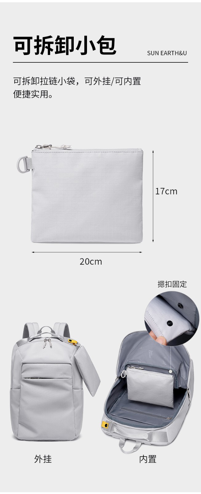 ProTrip 轻旅双肩包 轻装上阵,自在出行。 ProTrip 轻旅双肩包,将简约设计与实用功能巧妙结合。轻盈的背负体验,让你在城市街头自由穿梭;宽敞主仓与多功能分区,轻松容纳日常随身物。可拆卸小包设计,既能单独使用,也能随包搭配,灵活切换多种出行场景。无论是休闲逛街、周末短途,还是日常通勤,ProTrip 都是你的时尚出行搭档。 【Sun Earth &U】