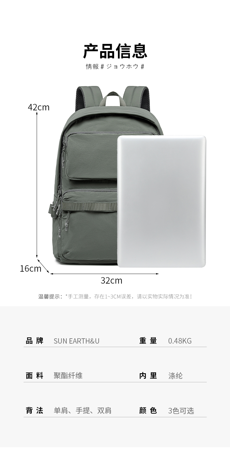 轻装上阵,收纳无忧。AirVault 轻行双肩包采用轻盈舒适材质,整包重量仅约 0.48kg,却拥有充足的大容量空间。内部分层设计,轻松容纳 15.6 英寸笔记本、平板、书本、手机及日常小物,收纳井井有条。外部多功能口袋,让随身物品随取随放,更加高效便捷。不论是日常通勤、休闲出行,还是学习与差旅,AirVault 都能为你带来轻便与有序的双重体验。 【Sun Earth &U】